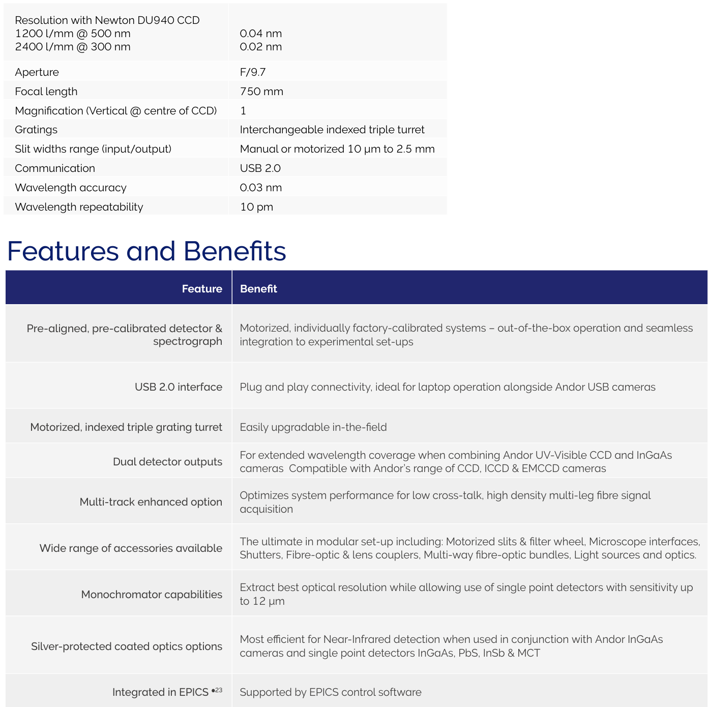 更长焦距的Shamrock系列是为弱光应用需求设计的,但同样适合常规测量。具有多个输入/输出、丰富的可替换部件以及一键控制电动附件等特点,是一个高度通用的平台。